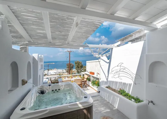 The 9-room Bella View Mykonos Town Suites is within a 10-minute drive of Nammos Mykonos and boasts spa facilities such as a Jacuzzi. This apartment also has a terrace overlooking the sea.